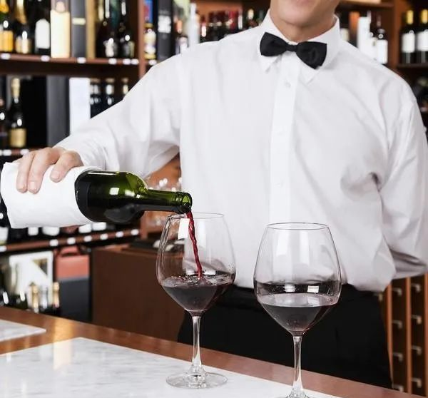 倒酒時,先首席客人后其他賓客。依次站在每一個客人的右側逐一倒酒,最后給自己倒酒。由于宴會的規格、對象、民族風俗習慣不同,因此倒紅酒順序也應靈活多樣。